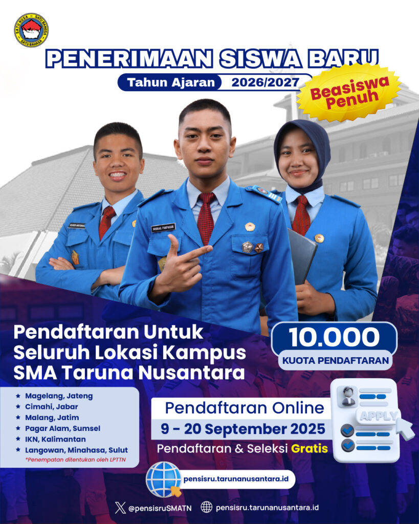 Penerimaan Siswa Baru Tahun Ajaran 2026/2027 SMA Taruna Nusantara