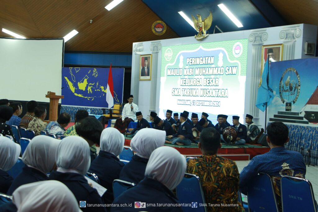 Keluarga Besar SMA Taruna Nusantara Terintegrasi memperingati Maulid Nabi Muhammad s.a.w. malam ini Jumat tgl.13 September 2024 di Balairung Pancasila dan di Aula Jenderal Sudirman Dodik BN Rindam IV yang dihadiri oleh seluruh Pengurus, Pamong, IKKP dan Siswa kls XII, XI dan kelas X baik Satdik A maupun B. Uraian hikmah Maulid Nabi yang berlangsung