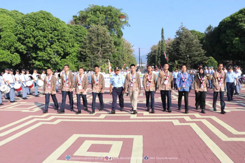 Senin 2 September, setelah upacara bendera, suasana di SMA Taruna Nusantara bertransformasi menjadi sebuah perayaan kebanggaan. Sebanyak 1099 siswa bersama Pengurus Sekolah dan Pamong berjajar di sepanjang boulevard jalan masuk SMA Taruna Nusantara menyambut kedatangan Tim OSN 2024 yang kembali dari ajang nasional dengan membawa 2 medali perak dan 3 perunggu dan satu penghargaan bergengsi
