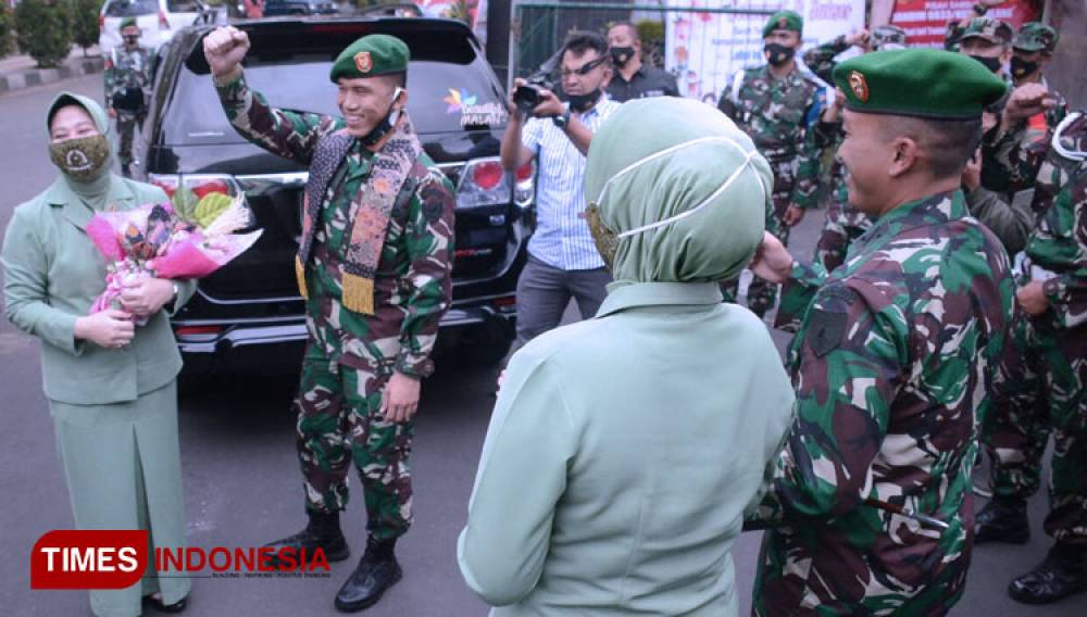 Letkol Inf Tommy Anderson berpamitan dari mobilnya usai lepas jabatan sebagai Dandim 0833 Kota Malang. (Foto: Adhitya Hendra/TIMES Indonesia)