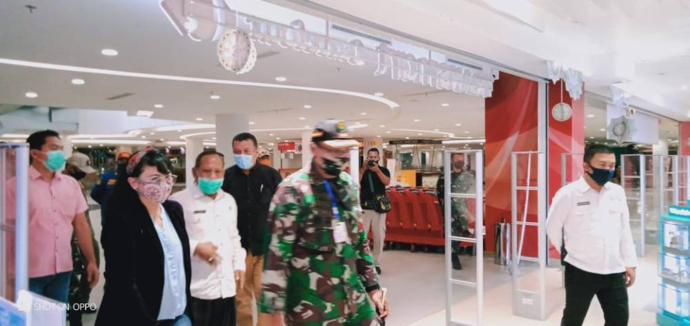 Bersama rombongan yang di antaranya juga ada Kepala Dinas Perindustrian dan Perdagangan Kabupaten Karawang Ahmad Suroto dan Kepala Satpol PP Kabupaten Karawang Asep Wahyu, Dandim mengecek kesiapan para pihak pengelola beberapa mall dan pasar yang akan dibuka kembali, Rabu (27/5).