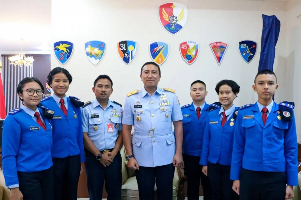 Komandan Lanud Halim Perdanakusuma Marsekal Pertama TNI Destianto Nugroho Utomo (TN 1) menerima kunjungan lima  orang Siswa SMA Taruna Nusantara di Ruang Kerja Danlanud Halim P, Senin 8 Januari 2024.
