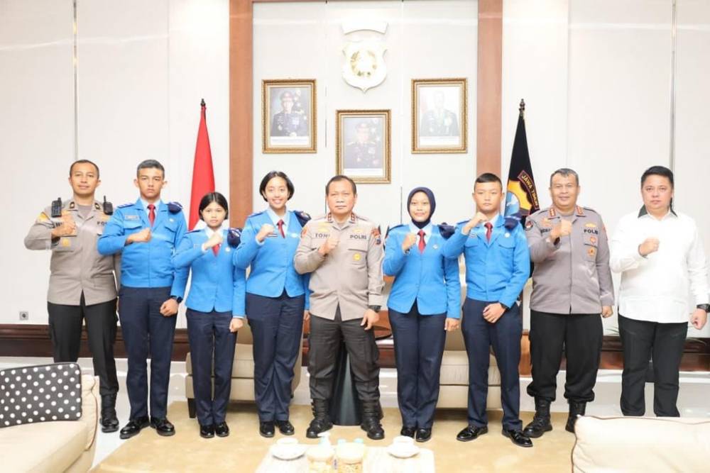 Kapolda Jatim Inspektur Jenderal Polisi Toni Harmanto menerima Queenara dan kawan-kawan Siswa SMA Taruna Nusantara kelas X. Kapolda didampingi Dirreskrimsus Polda Jatim, Kombes Pol Farman yang merupakan alumni angkatan pertama (TN 1)
