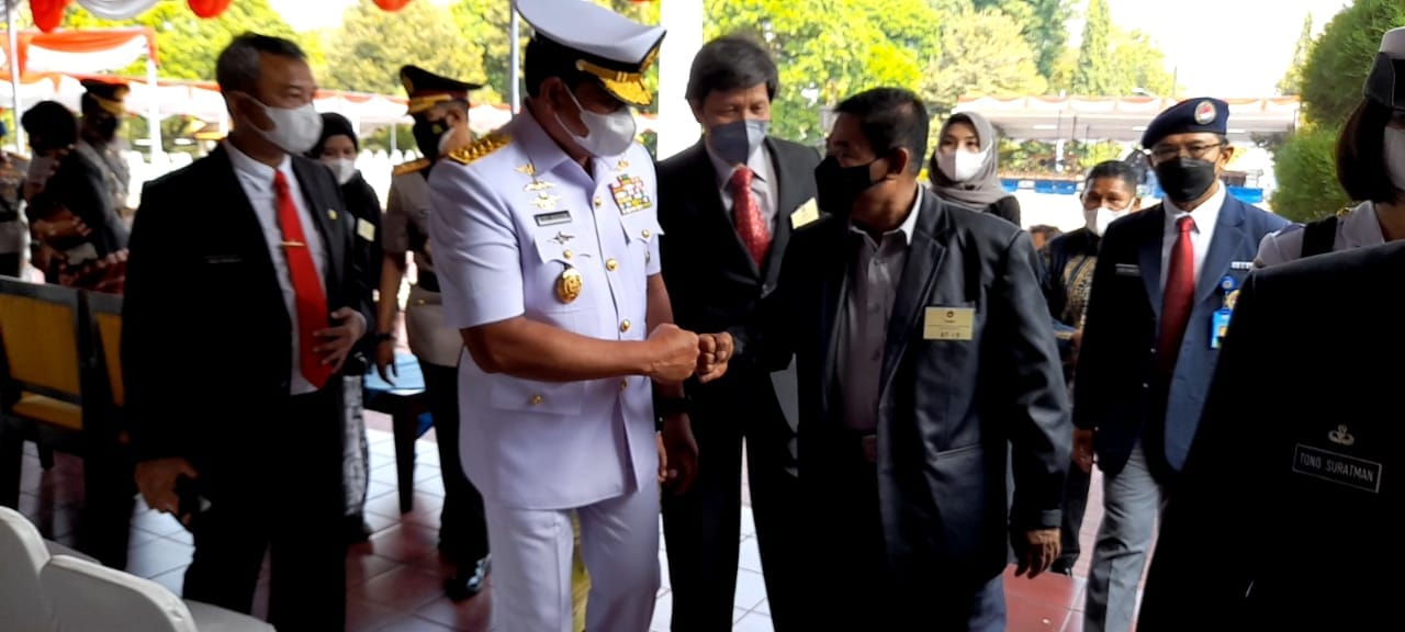 Kepala Staf Angkatan Laut (Kasal) Laksamana TNI Yudo Margono terlihat berbincang dengan salah satu orang tua siswa, Cak Herry SL seusai upacara.