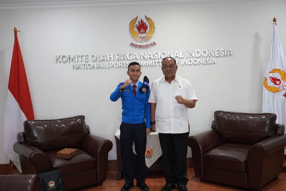 Ketua Umum KONI Pusat Letnan Jenderal TNI Purn. Marciano Norman pada hari Sabtu, 24 Desember 2022, menerima kunjungan siswa kelas X SMA Taruna Nusantara, Dimas Aryo Parikesit di ruangan kerjanya.