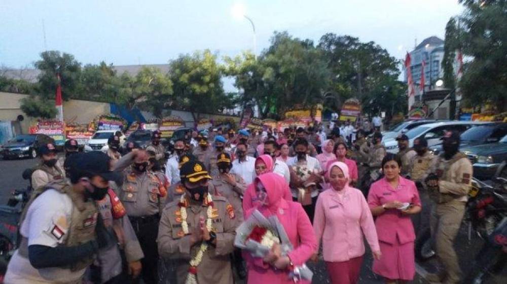 Sejumlah pejabat utama dan Kapolres Metro Jakarta Utara Kombes Sudjarwoko ikut serta mengiringi kepergian Kombes Budhi Herdi Susianto hingga pintu gerbang Mapolres Metro Jakarta Utara.