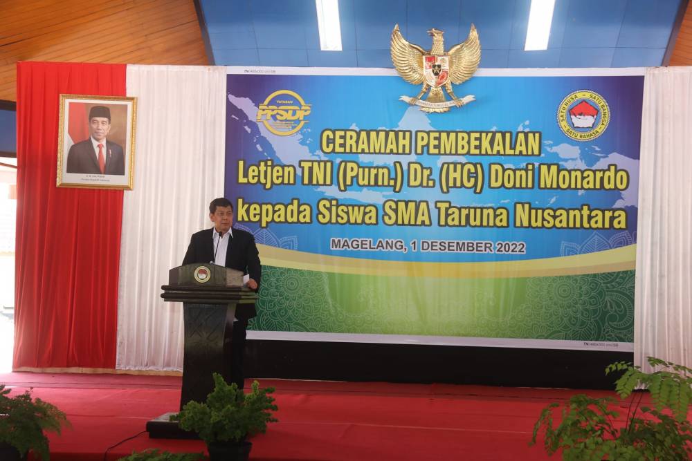 Ceramah Pembekalan Letjen TNI Purn. DR. (HC) Doni Monardo selaku Komisaris Utama MIND.ID kali ini lebih tepat disebut sebagai kuliah umum yang membuka wawasan masa depan Siswa SMA TN.