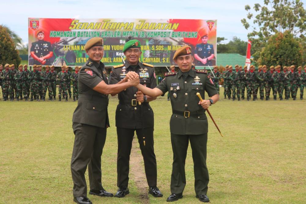 TANJUNG REDEB- Serah Terima Jabatan (Sertijab) Komandan Batalyon Artileri Medan 18/ Komposit Buritkang yang sebelumnya dipimpin Letkol Arm Yudhi Ari Irawan, kini dipimpin Letkol Arm Khoirul Cahyadi.