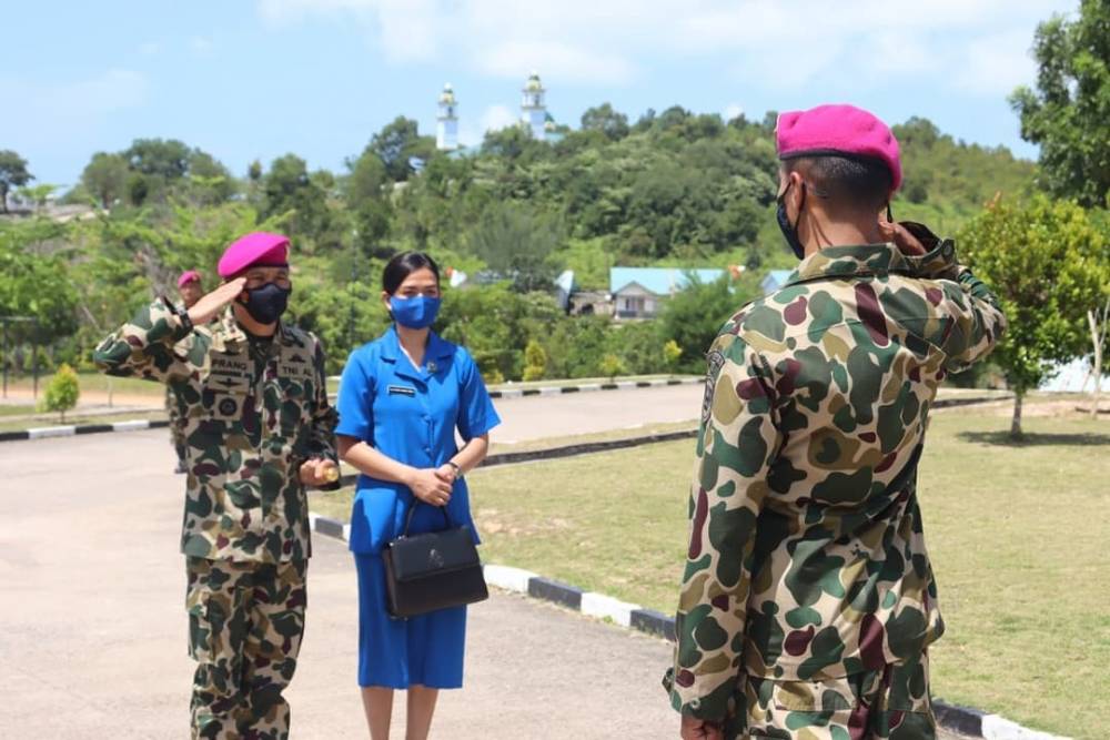 (Batam) Komandan Batalyon Infanteri 10 Marinir/SBY Letkol Mar Briand Iwan Prang Beserta Ketua Ranting E cabang 7 PG Kormar Ny.Allendia Briand Iwan Prang melaksanakan Acara Tradisi Penyambutan (Entry Briefing) dengan seluruh Anggota Yonif 10 Mar/SBY baik Perwira, Bintara, Tamtama, bertempat di Balai Prajurit, Pulau Setoko Batam. Jumat, (24/09/2021).