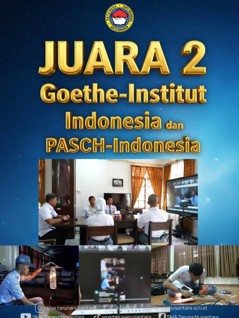 Prestasi membanggakan kembali diraih oleh siswa-siswi SMA Taruna Nusantara! Enam siswa berhasil menyabet Juara 2 dalam ajang bergengsi “Sampassador Beraksi” yang diselenggarakan oleh Goethe-Institut Indonesia dan PASCH-Indonesia. Lomba ini mengangkat isu penting terkait lingkungan dan keberlanjutan, dengan fokus pada inovasi pemanfaatan sampah untuk energi alternatif. 👏 Tim Pemenang dari SMA TN: Di bawah bimbingan Ibu
