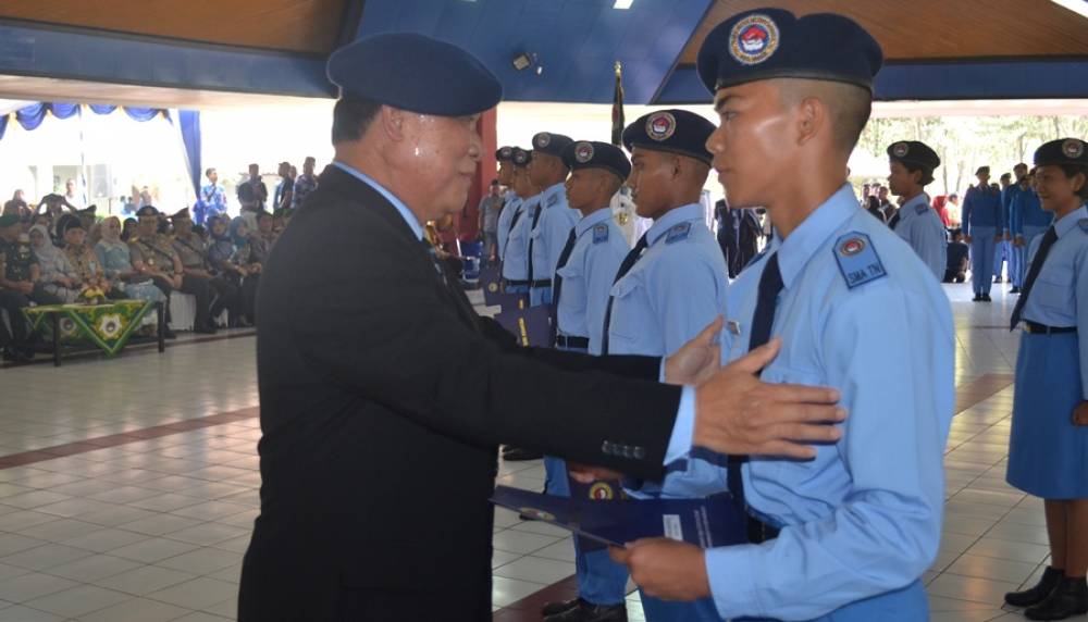 MAGELANG (KRJogja.com) – Ketua Yayasan Kesejahteraan Pendidikan dan Perumahan (YKPP) Mayjen TNI (Purn) Bambang Hermanto menutup rangkaian kegiatan Pendidikan Dasar Kedisiplinan dan Kepemimpinan (PDK) siswa SMA Taruna Nusantara Angkatan ke-30 di Balairung Pancasila SMA TN Magelang, Sabtu (12/10/2019). Dalam kesempatan ini Ketua YKPP juga menyerahkan piagam penghargaan kepada peraih nilai terbaik di masing-masing graha.