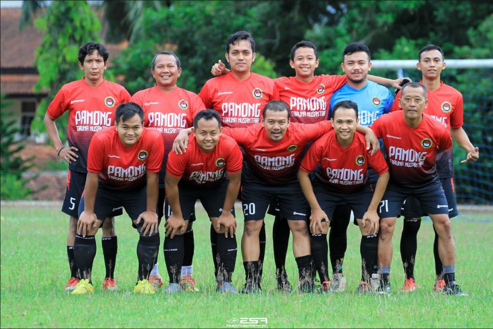 Pertandingan sepak bola persahabatan antara Kesebelasan Pamong vs Juventini Magelang di Lapangan SMA TN.
