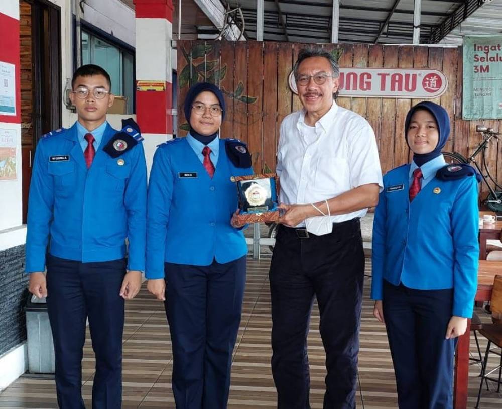 Dr. Ir. Ridwan Djamaluddin, M.Sc. Pj. Gubernur Kepulauan Bangka Belitung menerima dengan penuh antusias kehadiran siswa kelas X SMA SMA Taruna Nusantara Refa Nurtantiawati, Famella Desmarani dan Muhammad Qisyal Alfitrah.
