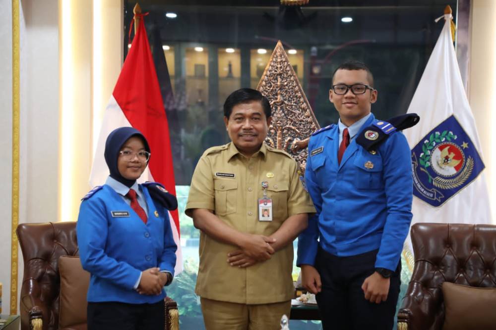 Sekretaris Jenderal Kementrian Dalam Negeri Republik Indonesia, Dr. Drs. H. Suhajar Diantoro, M.Si. menerima siswa kelas X SMA Taruna Nusantara, Winayu Ainun Nasuroh dan Fathii Izzudien Al Bustomi.