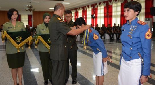 MAGELANG, KRJOGJA.com – Sermatutar Eka Indri Widarti (TN 21) terpilih sebagai taruni lulusan terbaik dan mendapatkan penghargaan Anindya Wiratama, yang diserahkan langsung Gubernur Akademi Militer (Akmil) Mayjen TNI Arif Rahman di Gedung Lily Rochli Akmil Magelang, Kamis (13/7/2017). Kegiatan di Gedung Lily Rochli ini juga dihadiri Wakil Gubernur Akmil Brigjen TNI Wisnoe PB maupun lainnya.