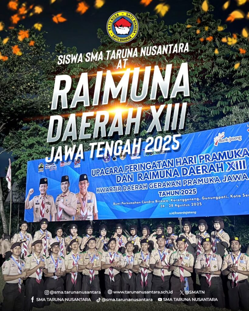 Sebanyak dua belas siswa SMA Taruna Nusantara yang tergabung dalam Kontingen Cabang Kabupaten Magelang turut berpartisipasi dalam Raimuna Daerah XIII Jawa Tengah 2025.
