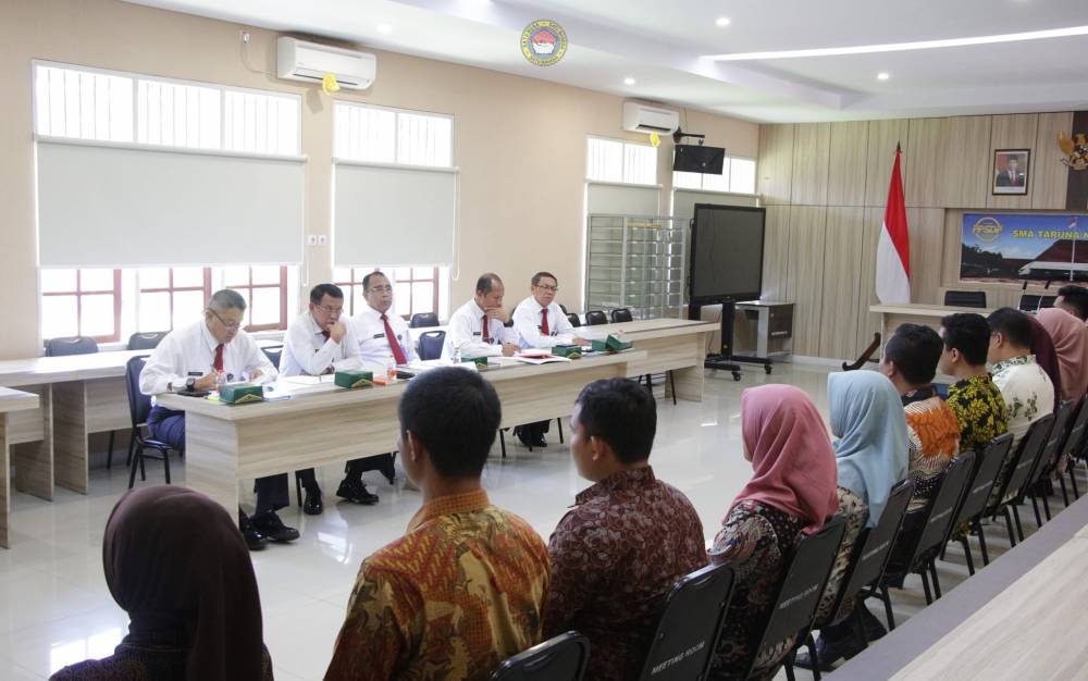 Rangkaian wawancara Calon Pamong diakhiri dengan wawancara oleh Pengurus Sekolah lengkap yang dipimpin Kepala SMA Taruna Nusantara Mayjen TNI (Purn.) Tono Suratman didampingi Wakasekmin Mayjen TNI (Purn.) Nanang D. Priadi, Wakaseksuh Mayjen TNI (Purn.) Yacob D. Sarosa, Wakaseksis Mayjen TNI (Purn.) Asrobudi dan Wakasekdik Bambang Edy Suparyanto, S.Sos.